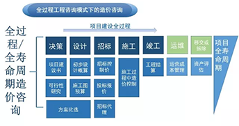 全過程造價咨詢業務是將全過程造價管理的思想和方法應用于工程造價咨詢服務中,不只局限于估算編制、初步設計概算編制、標底編制、預結算審查等單一咨詢業務,而是將上述業務全部融合而貫穿于項目建設全過程,是按照建設項目的過程與活動的組成與分解實現項目全過程的造價管理。 傳統的國內造價咨詢的重點一般在于招標時編制招標清單及標底,結算時審核結算文件