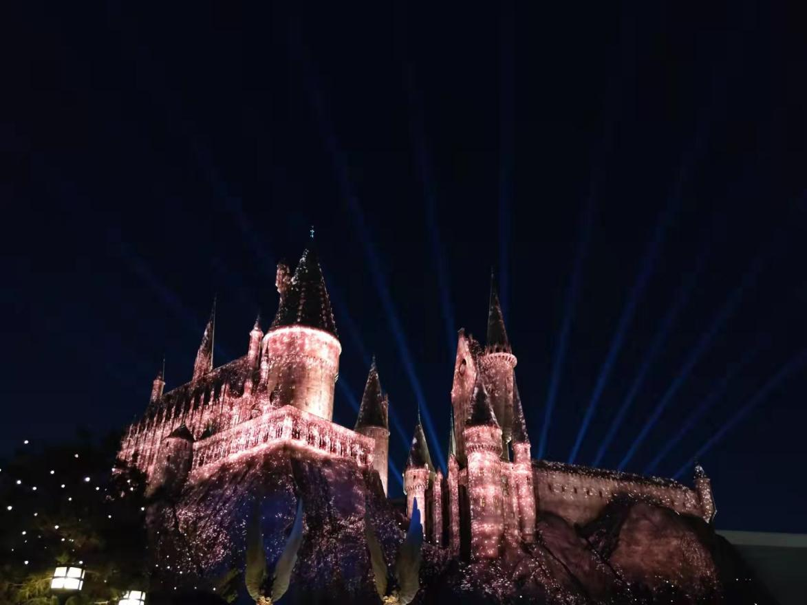 隨著夜幕的降臨,大家聚在一起看了精彩絕倫的霍格沃茲城堡的燈光秀,在熠熠生輝的燈光下,大家露出了充滿欣喜與歡樂的笑容。